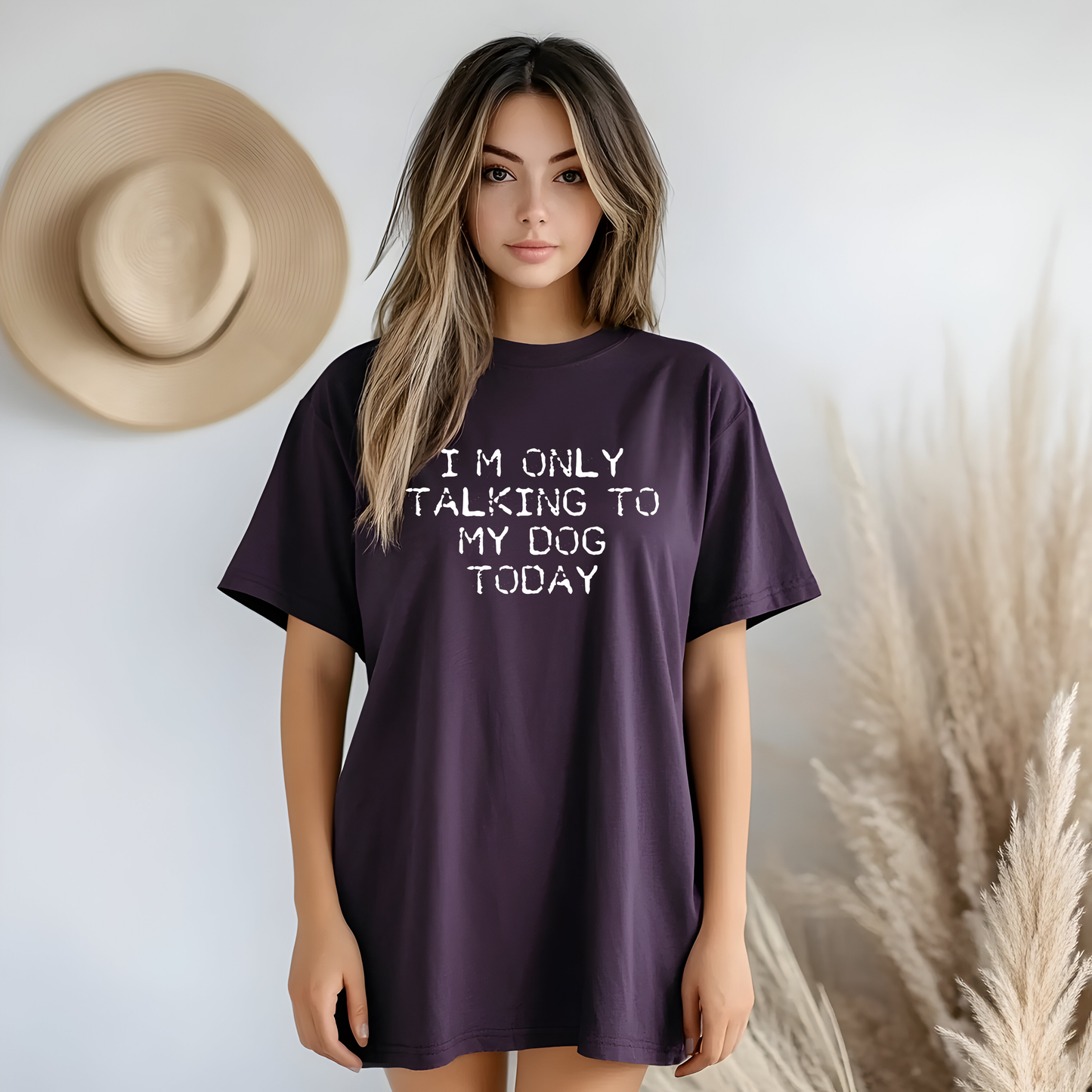 Tired of small talk with humans? Same. That’s why this shirt lets everyone know the real MVP of your social circle: your dog. Whether you’re dodging awkward conversations at the grocery store or avoiding chatty neighbors on walks, this tee has you covered—literally. Made from soft, comfy cotton that’s perfect for lounging with your four-legged therapist, this shirt is a must-have for dog parents who believe belly rubs are better than politics and barking is a valid form of communication.